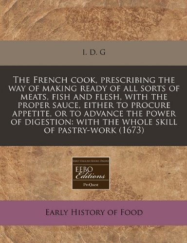 Read PDF The French cook, prescribing the way of making ready of all sorts of meats, fish and flesh, with the proper sauce, either to procure appetite, or to ... with the whole skill of pastry-work (1673) by I. D. G (13-Dec-2010) Paperback Online